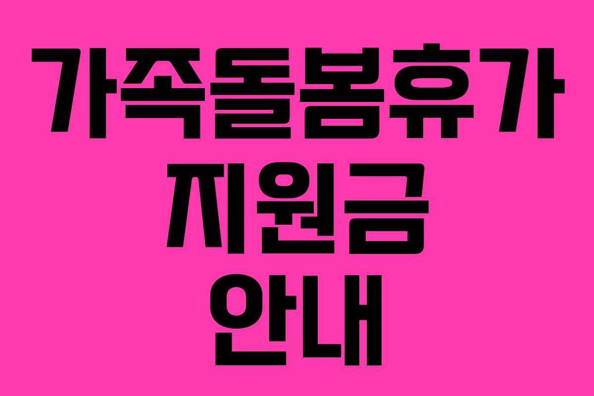 가족돌봄휴가 지원금은 근로자가 가족을 돌보기 위해 휴가를 사용할 때 제공되는 경제적 지원입니다. 주로 자녀, 배우자, 부모 또는 조부모와 같은 가족 구성원의 돌봄을 위한 경우에 해당합니다.