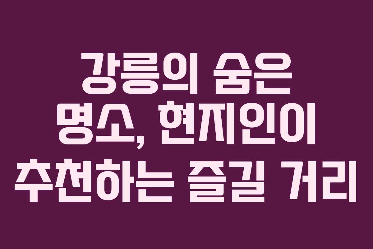 강릉은 바다와 산의 아름다움이 어우러진 장소로 유명합니다. 이번 글에서는 강릉에서 현지인이 추천하는 숨은 명소와 놀거리를 소개합니다. 관광지에서 벗어나 강릉의 진정한 매력을 발견해보세요.