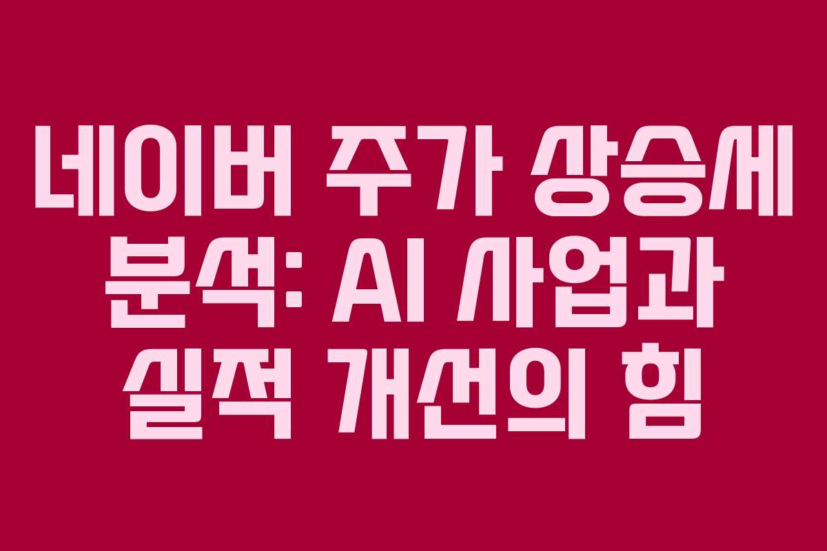 네이버 주가는 AI 사업의 성장세와 정부 정책, 실적 개선 등이 복합적으로 작용하여 상승세를 보이고 있습니다.