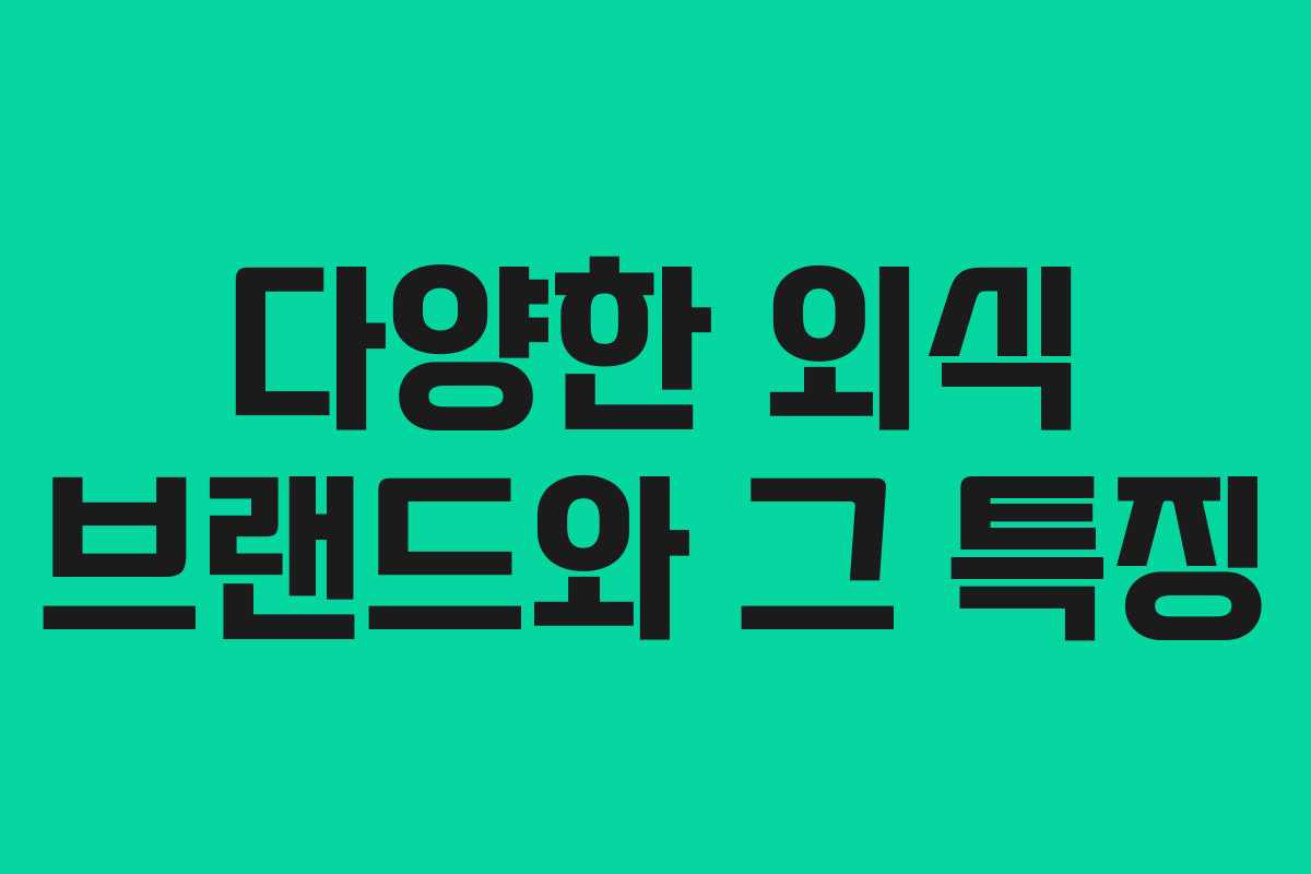 다양한 외식 브랜드들이 국내에서 활발히 운영되고 있으며, 각 회사마다 고유한 메뉴와 서비스로 고객을 맞이하고 있습니다. 이 글에서는 몇 가지 주요 외식 브랜드를 소개하고, 그들의 특징을 살펴보겠습니다.