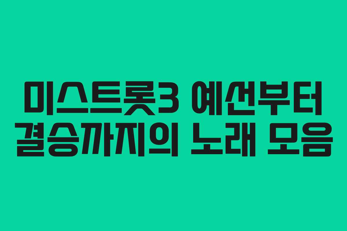 TV CHOSUN의 인기 프로그램 미스트롯3는 많은 사랑을 받아왔습니다. 이번 글에서는 예선부터 결승까지 총 12회의 주요 곡들을 정리해 보겠습니다. 각 곡들은 원곡 정보와 함께 소개될 예정입니다.