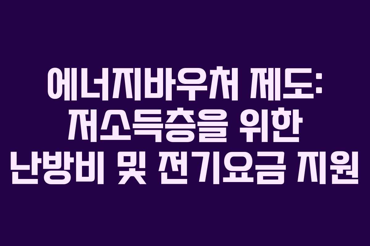 에너지바우처는 저소득층 가구의 여름과 겨울철 냉난방비 부담을 줄이기 위해 정부가 제공하는 복지 지원금입니다. 이 제도를 통해 국민들은 경제적으로 더 나은 환경에서 생활할 수 있게 됩니다.