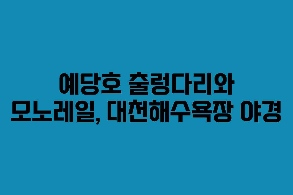 예당호의 출렁다리와 대천해수욕장은 여름철 여행지로 많은 사람들에게 사랑받는 명소입니다. 출렁다리에서의 짜릿한 경험과 대천해수욕장에서의 아름다운 야경은 여행의 즐거움을 더해줍니다.
