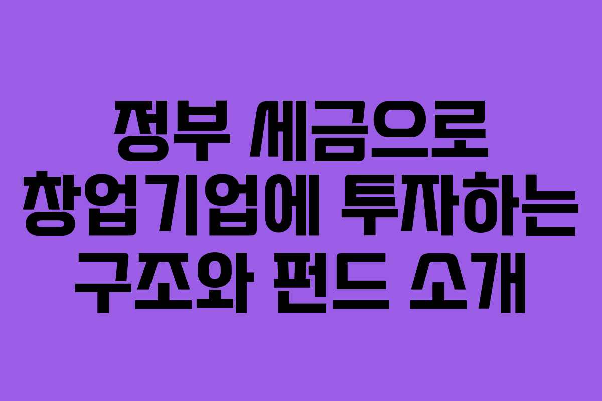 정부는 국민이 낸 세금을 직접 창업기업에 투자하는 것이 아니라, 그 세금을 모아 개별 펀드에 출자합니다. 이러한 펀드는 중소벤처기업부 산하의 공기업인 한국벤처투자와 한국성장금융투자운용에 의해 관리됩니다. 이들 기관은 국민 세금을 활용하여 창업기업에 필요한 자금을 지원합니다.