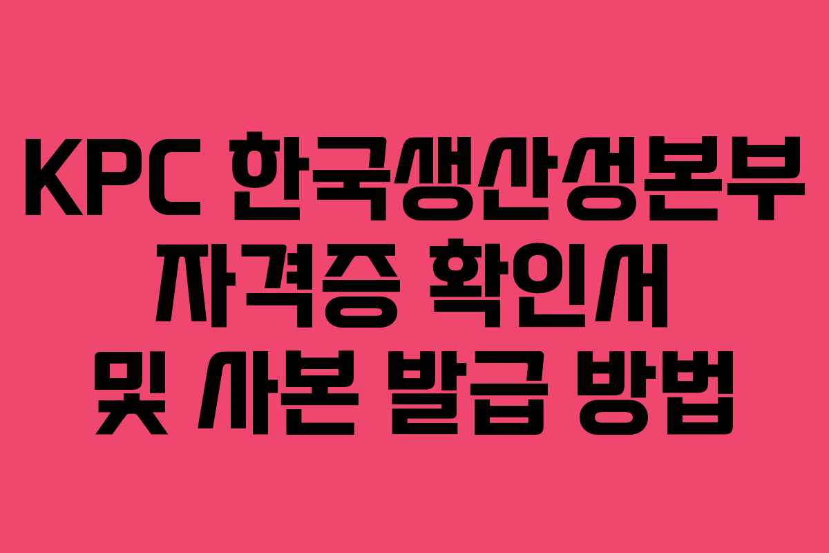 한국생산성본부(KPC)에서 자격증 확인서와 사본을 발급받는 방법에 대해 알아보겠습니다. 자격증 관련 서류는 취업이나 학업 등 다양한 상황에서 필요할 수 있습니다. 그러므로 필요한 서류를 쉽게 발급받는 방법을 소개합니다.