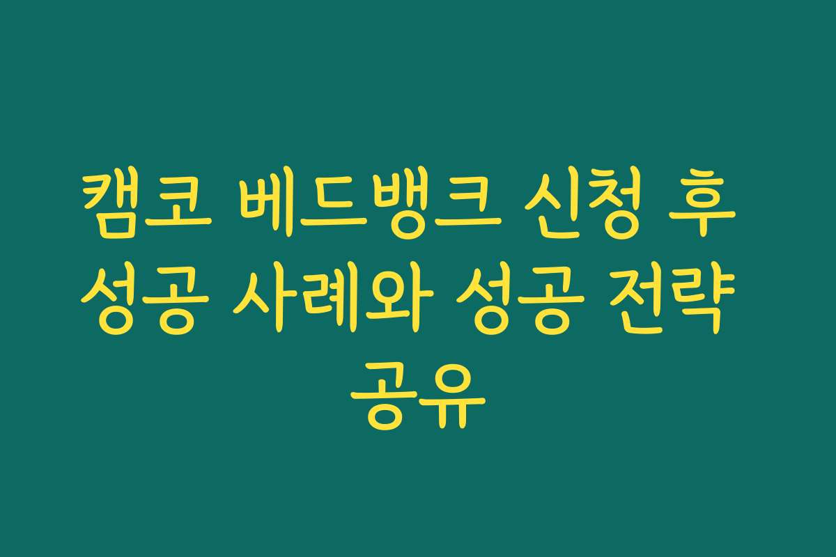 📊 2025년 캠코 베드뱅크 신청 후 성공 사례와 성공 전략 공유, 핵심만 빠르게